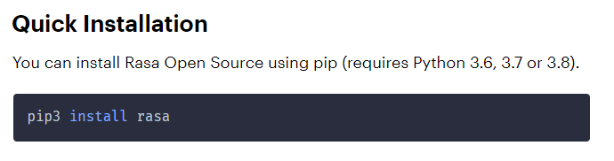 First thing first, we have to install RASA. We can do it simply by using pip install. Here, I use the RASA 2.x version.